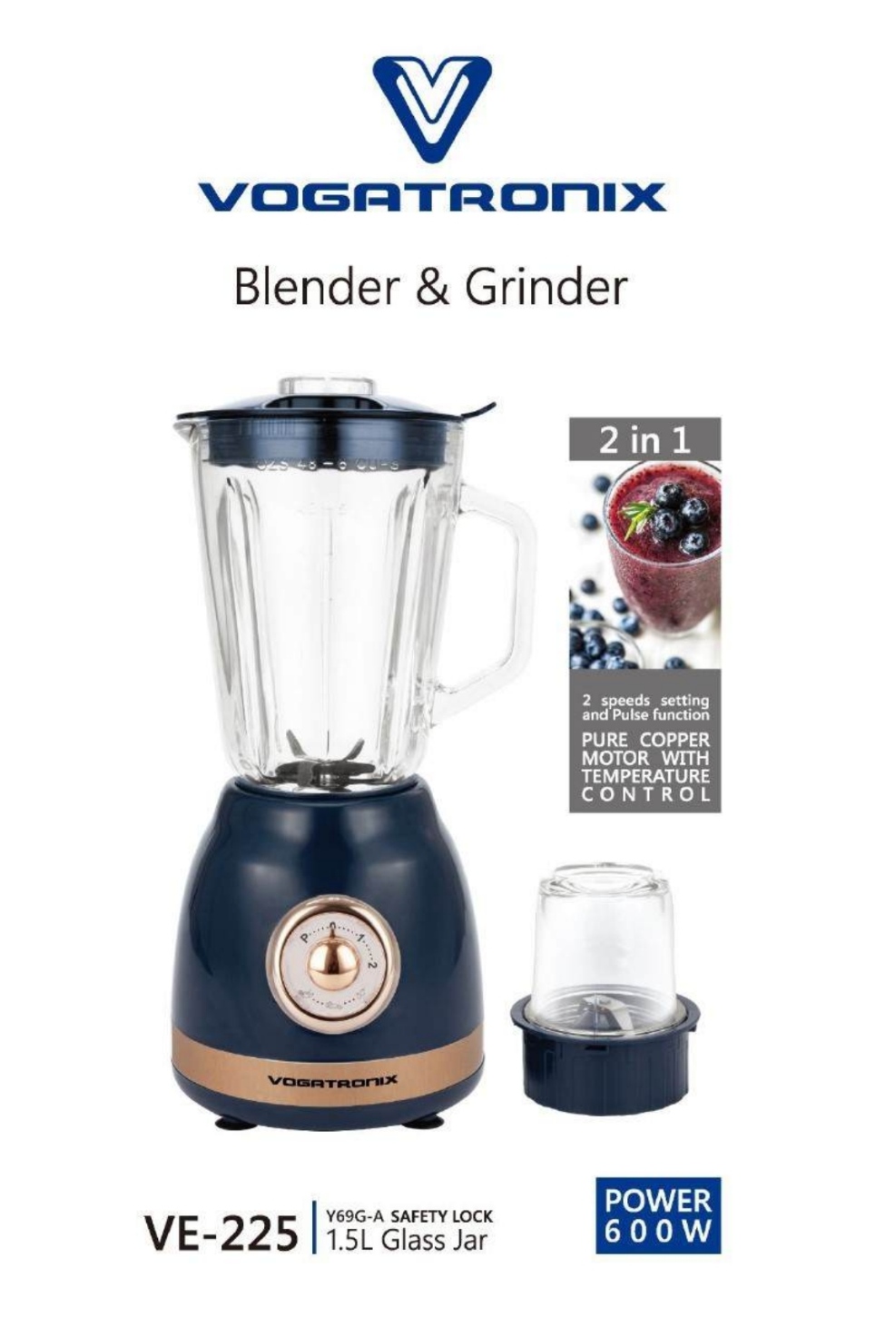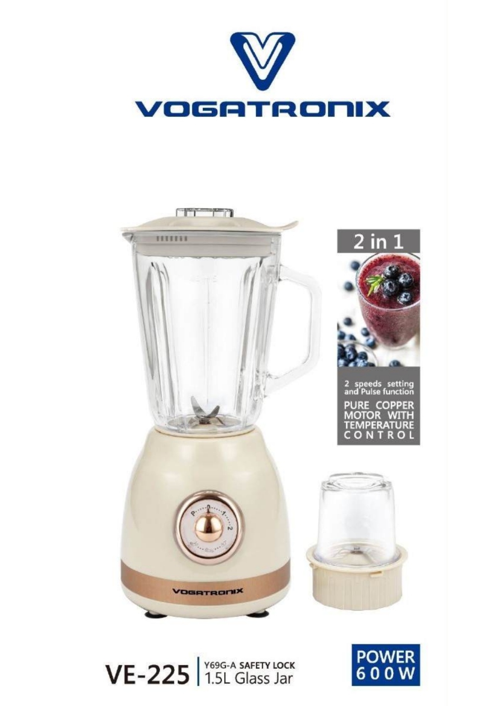 مخلوط کن و آسیاب وگاتی VE-225 قدرت 600 وات و تیغه استیل ضد زنگ
