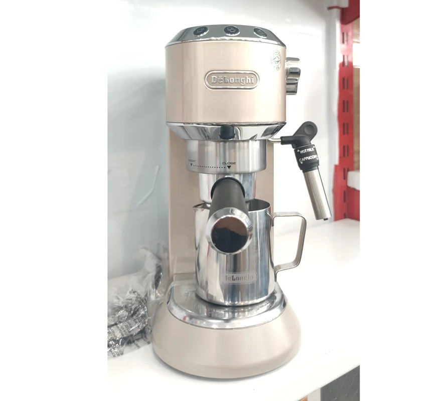 یک عدد تمپر ۳۰۰ گرمی بسیار با کیفیت ساخت شرکت دلونگی به همراه یک عدد پیچر یا شیر داغکن تمام استیل ساخت شرکت دلونگی است.
